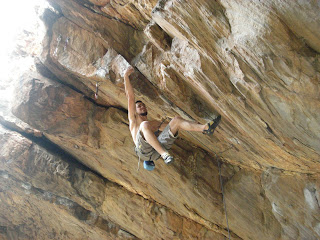 Right off the bat we meet this American guy Tom, that Jenn and Nick had met earlier in their travels while in Asia. He takes us up to the top of the pass to Rocklands proper. This area hosts most of the problems that I have seen pictures of including 'Nutsa' 8a+ this amazing over hanging bulge. This place is stacked with amazing problems of every grade. The great part about rocklands is that you can climb any grade all day long. I warm up slaying problems left and right so happy like a kid in a candy shop. I don't know how many times the words this is amazing roll off my tongue, but it never gets old. Because of the endless boulders only the three star problems have been choked up there is no need to climb anything but. Down the way a few meters I stumble apon the ultra classic 'Roof on fire' I have seen many shots of Lisa and Fred Nicole on this problem. I am so psyched to try this thing. Its just as good as it looks in the videos and climbs even better then I could of imagine on incut crimpers completely upside down.